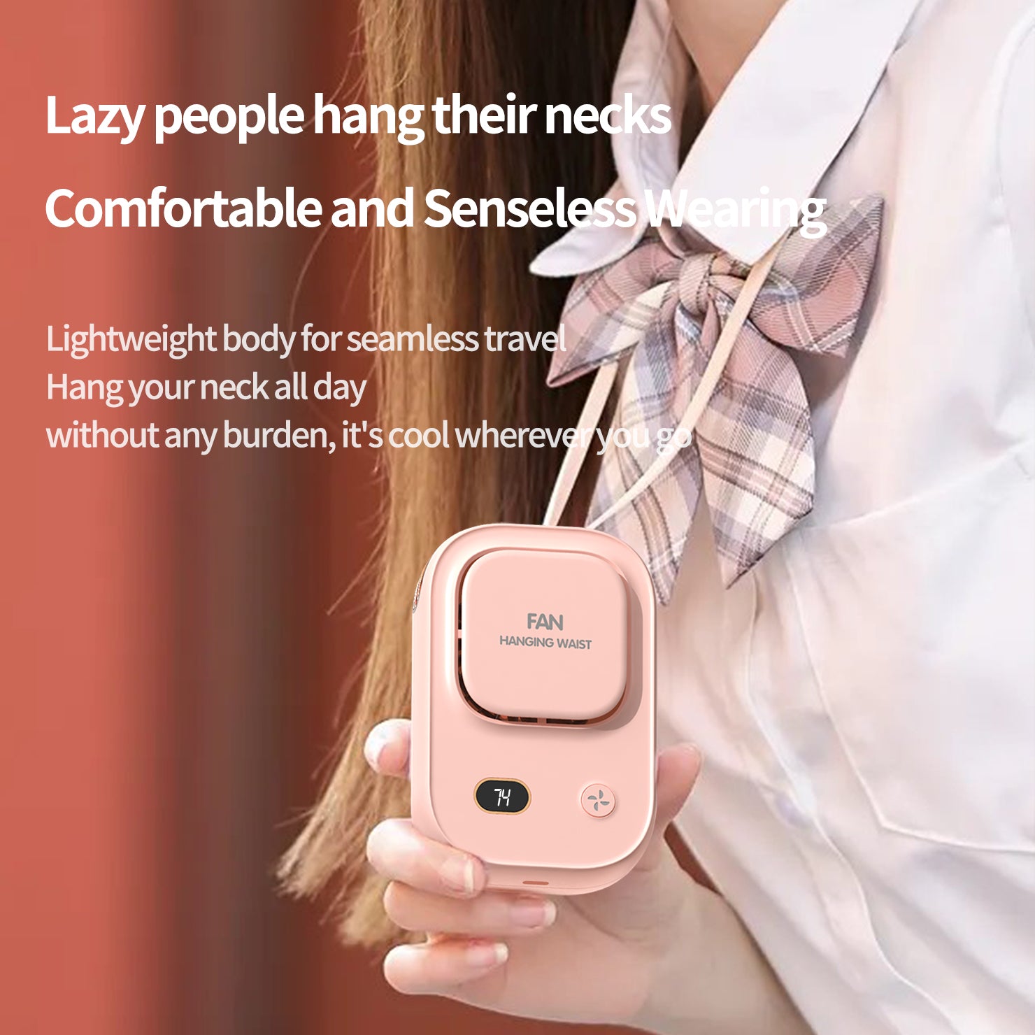 2. Lightweight and Portable: With wearable belt fan's lightweight body, you can comfortably hang it around your neck all day without feeling any burden. Stay cool wherever you go, without any hassle.