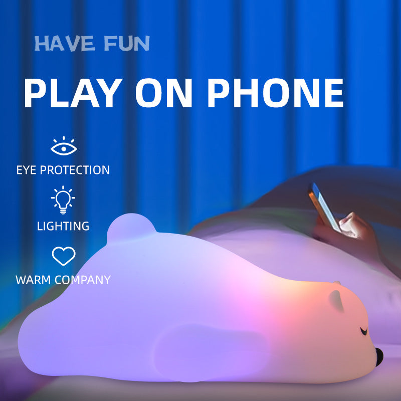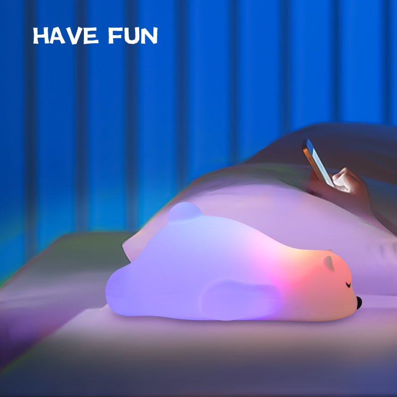 The XRZ149 Lying Bear Silicone Night Light brings warmth, comfort, and character into any space. With its soft, cuddly bear shape and gentle lighting, it's the perfect nightlight for children, animal lovers, and cozy home decor enthusiasts. Made of safe, soft silicone and durable ABS, it’s designed for everyday use and family-friendly spaces.