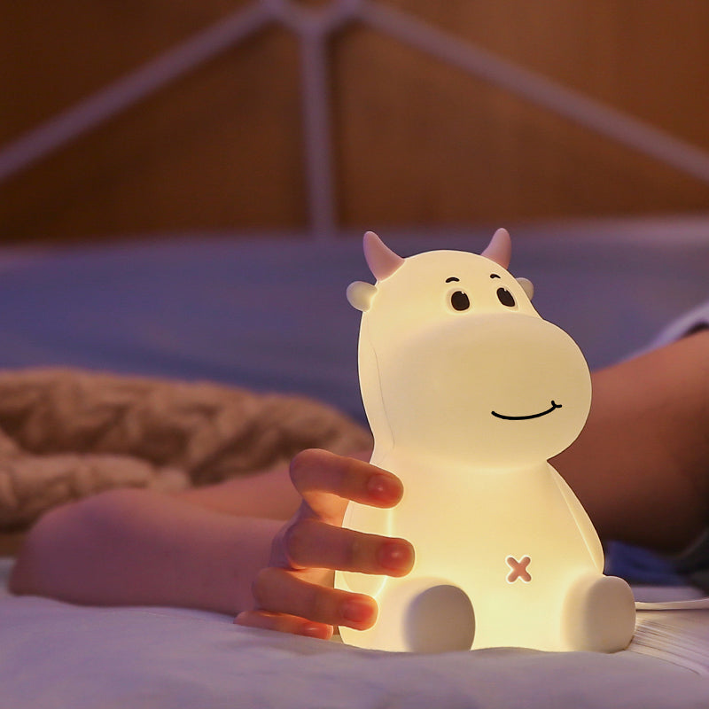 This cow-shaped silicone night light features soft warm lighting, RGB color transitions, and a convenient 30-minute timer—perfect for kids, bedrooms, and nursery decor. Rechargeable via USB Type-C, it's portable, safe, and adorable.