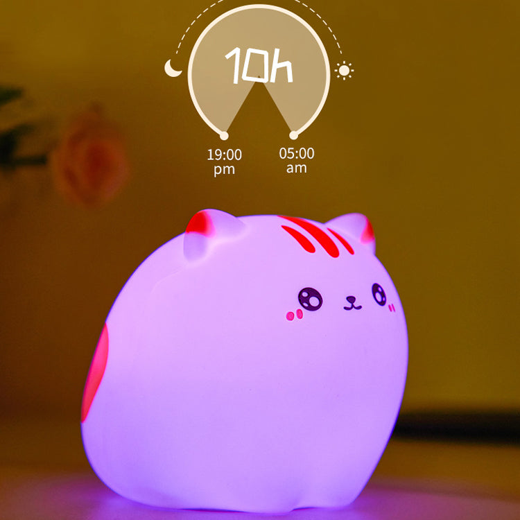 Luz noturna de gato fofo para crianças, 7 cores, lâmpada de animal com luzes recarregáveis USB para berçário de bebê luz noturna para meninas, meninos, crianças, bebês, bebês e gatos de silicone
