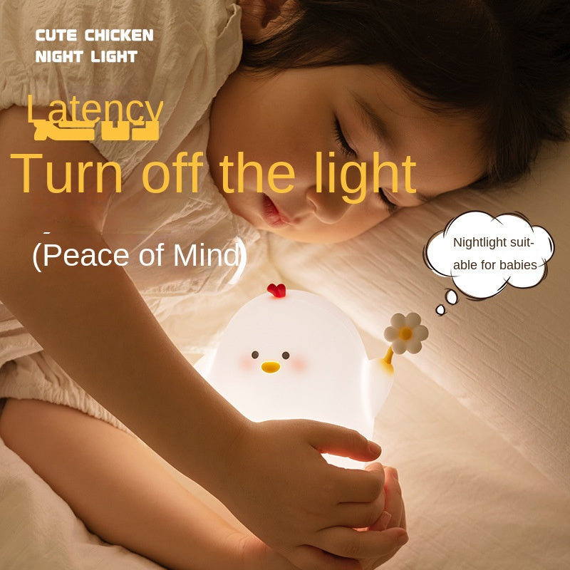 Linda luz nocturna de pollo con flores para niños la lámpara de pollo con flores es una decoración estética de dormitorio lámpara blanda de silicona de grado alimenticio