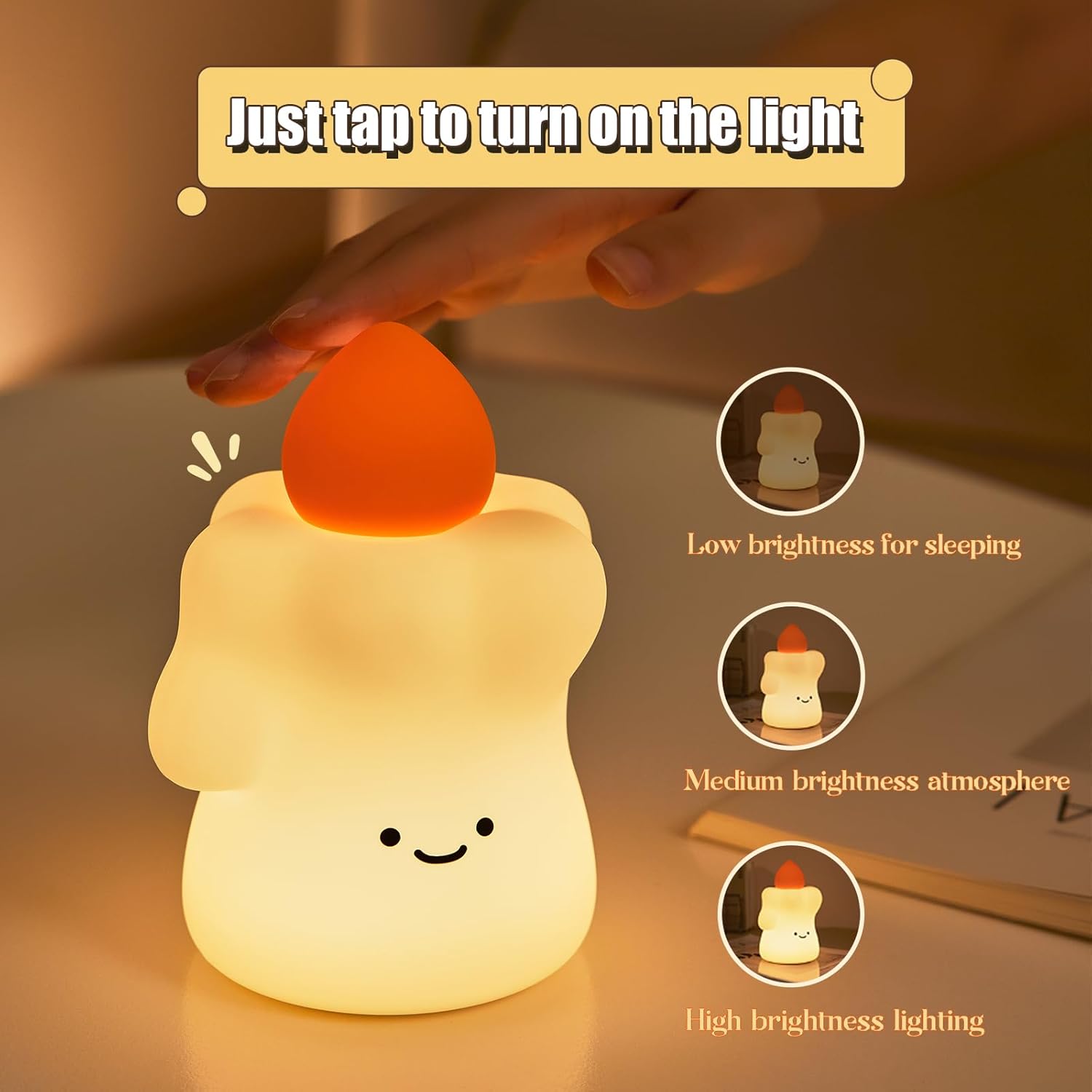 night light, silicone night light, LED night light, rechargeable lamp, USB night light, candle lamp, baby night light, kids night light, bedroom light, bedside lamp, soft light, ambient light, sleep aid lamp, portable night light, nursery light, kawaii night lamp, mood lighting, gift for kids, gift for her, soft silicone lamp, aesthetic night light, timer light