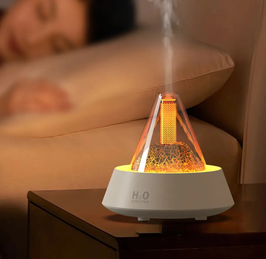Air Humidifier Essential Oil Diffuser, Colorful Portable Aroma Diffuser, USB Charging, 80ml Small Cool Mist Humidifier, Power-off Protection, Creative Volcano Mist Humidifier for Bedroom(White)